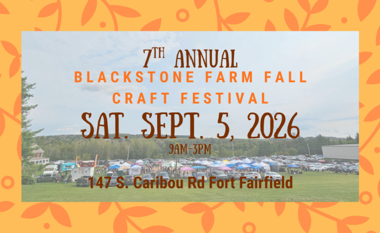 Join us for the highly anticipated craft fair of the season- the 7th Annual Blackstone Farm Fall Craft Festival. 60+ craft and food vendors come together for this one day outside event in Fort Fairfield. Easy to find and get…
