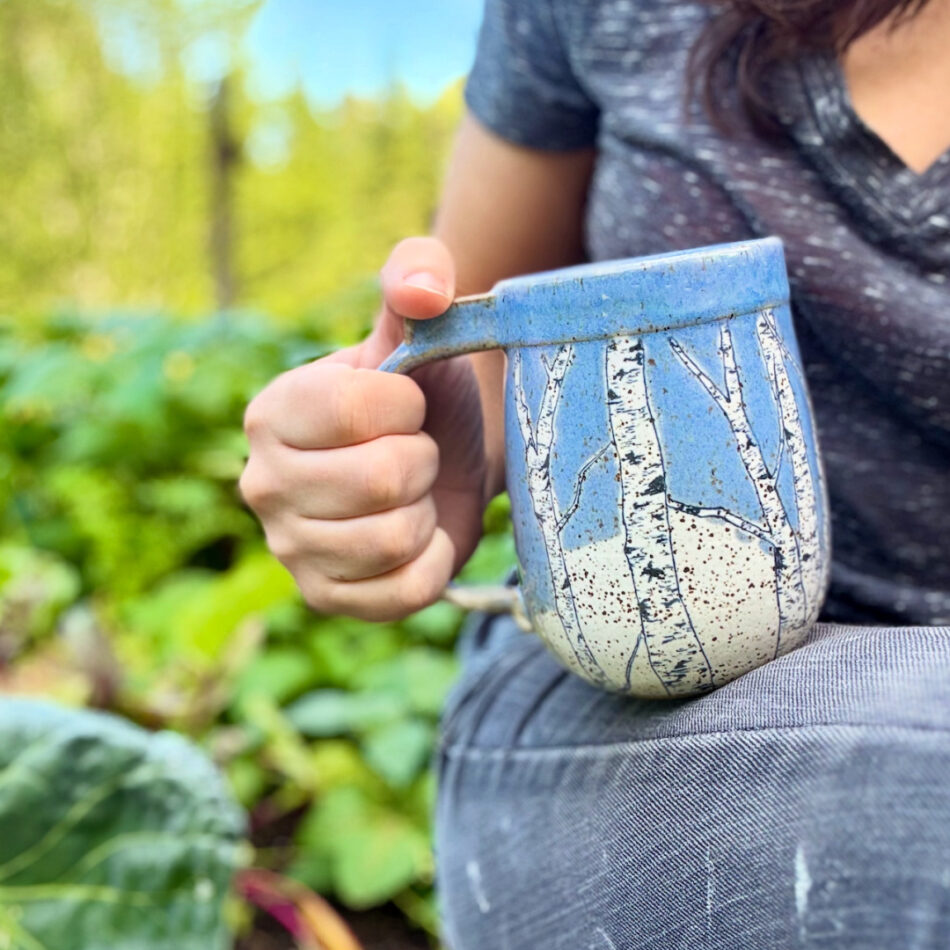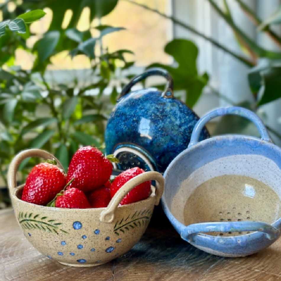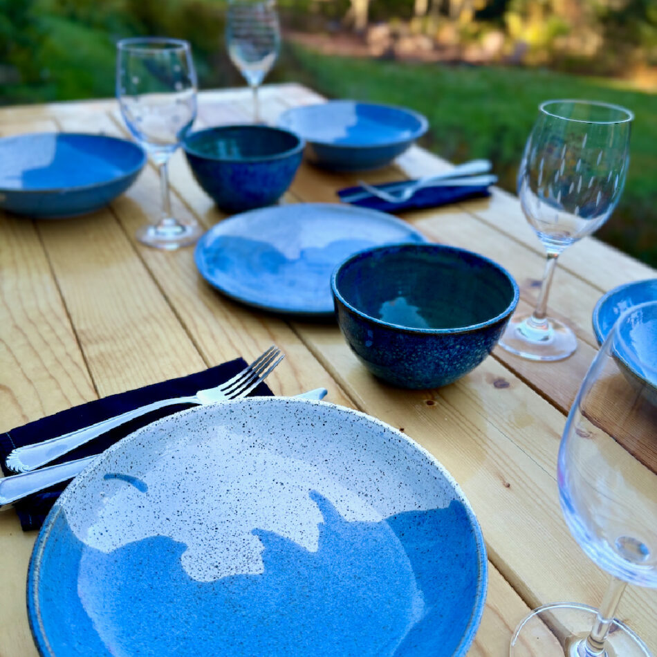 For my regular studio inventory, I choose forms and glaze patterns that reflect what I most value in daily-use pottery. First and foremost, every piece should feel good in the hand and be satisfying to use. The glaze patterns are inspired by and pay homage to the beauty Maine offers me each day. Just as importantly, my work is made for real life: every item is dishwasher-, oven-, and microwave-safe.