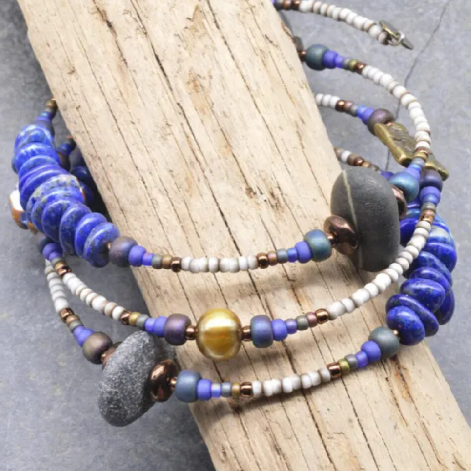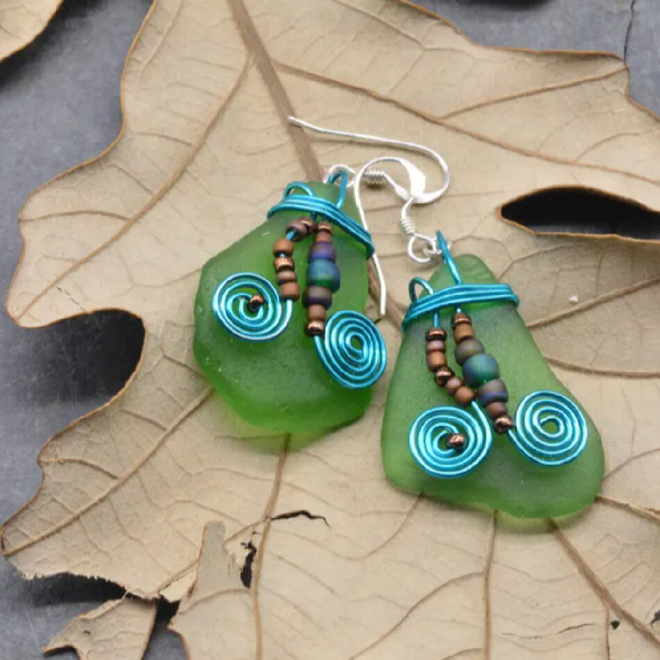 Each piece of my jewelry has a natural found object incorporated in it. Sea glass or stone,