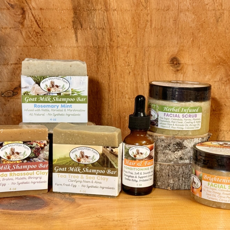 Misty Mountain Farm is women owned and operated by my daughter and myself. We own 40 chickens and 20 goats. Our animals have names and are our pets. We use our farm and our products to help bring awareness that animals should be treated with the love and respect they deserve. Our company has also committed to being palm free because we believe that environmental decisions also impact the lives of animals. We are a holistic farm that uses herbs for healing both ourselves and our animals and hopefully others as well!