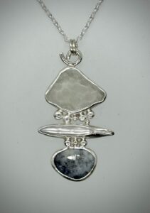 I reside in Maine with my husband and son. Being on the coast is an important factor of my work. A lot of my jewelry has sea glass or beach stones in it. My son and I go out hunting a lot. To me hunting for sea glass and beach stones is very therapeutic and relaxing for me. I can spend hours staring at the beach floor looking for the perfect piece. My son and I have our secret hunting spots that we have sworn to never to tell anyone.