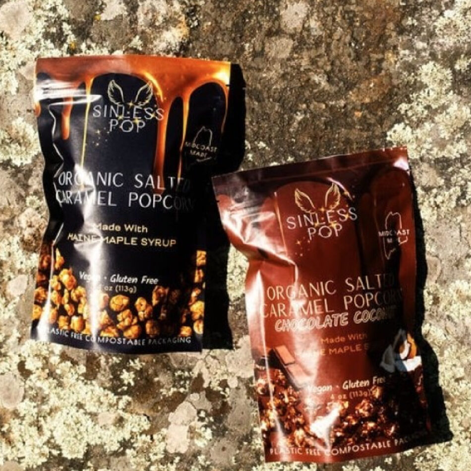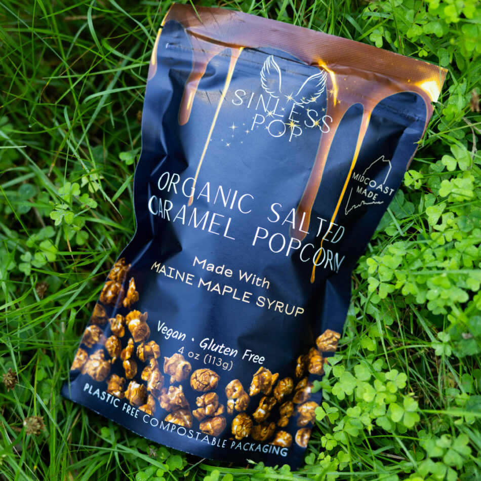 To Amanda Chase, Sinless Pop is more than just popcorn. It is the result of a long journey of transformation. After achieving a prestigious degree in her twenties, Amanda absconded from society to meditate and homestead on an isolated farm. She became passionate about growing organic food and transforming it into delicious meals and baked goods. When she gave birth to her child, she and her partner were gradually thrust back into the world, eventually finding themselves at home in Midcoast Maine where she devoted herself to motherhood while sharing her kitchen creations with her community. When her daughter began thriving in school full-time, Amanda returned to the question she had first set out to answer: “What is my calling?” only to realize that what she most wanted to do was the thing she was already doing: creating tasteful, wholesome organic food and sharing it with others.